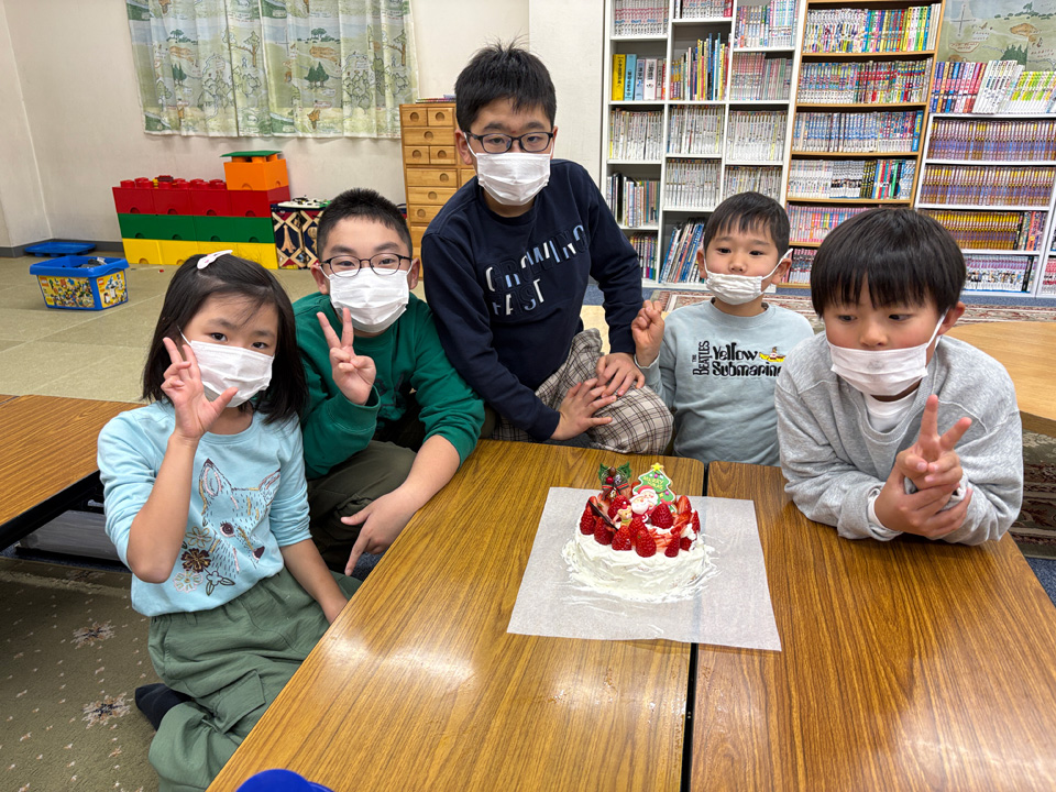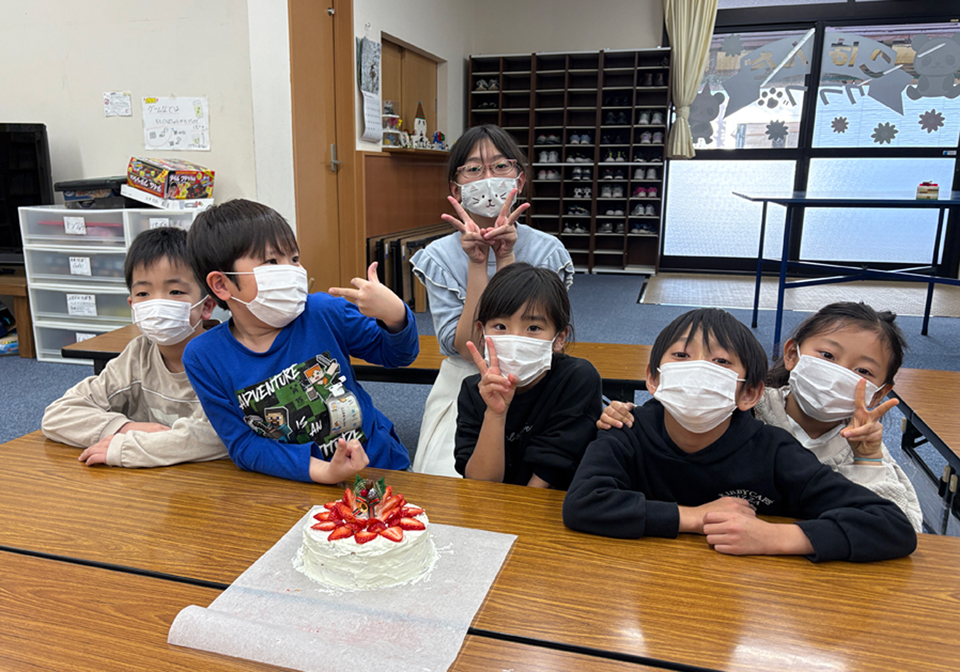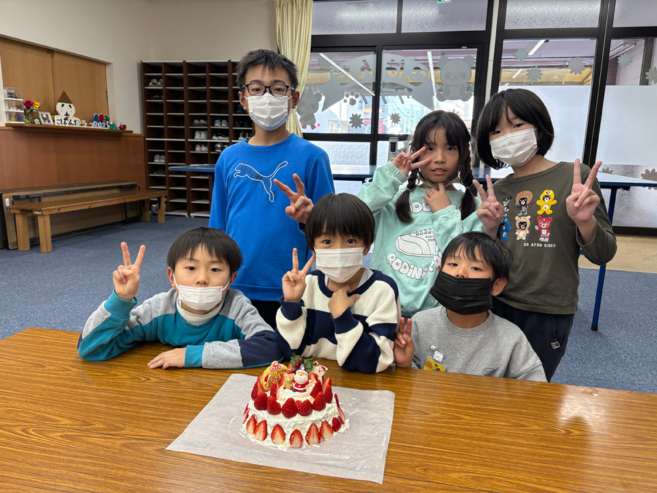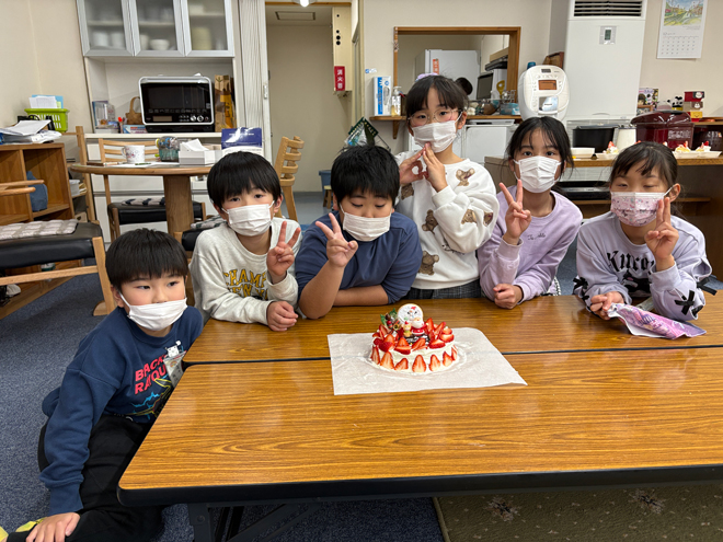 それでもあきらめずに取り組み、悪戦苦闘の末、素敵なケーキが完成しました。最後はみんなで「おいしいね」と言いながらいただきました。
